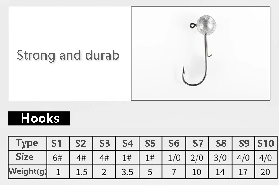 10pcs Jig head jigs hook 1g-20g All size Round Ball Jig Head Hook Weedless Long Shank Secondary hooks For Soft Worm Fishing