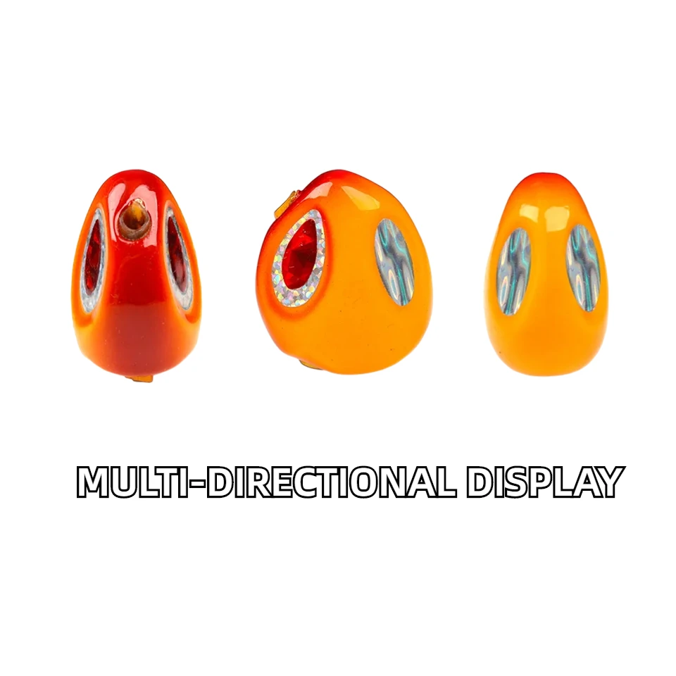 Jig will make sluggish or uninterested fish jump on the hook. The aerodynamic head design lets it sink quickly to the bottom and stabilize the jig when it is retrieved. The Lucanus Jigs feature a dual eyelet design that allows the bottom eyelet to be used for attaching a sinker during fast current conditions. Durable silicon skirts and trailers wobble and vibrate during the jig movement while the glow eye provides extra appeal in the deep water. Plus, the free-swinging multiple hook system provides higher hook-up ratio.