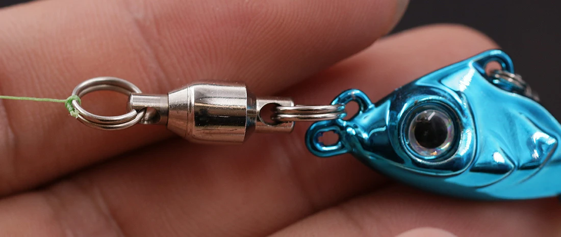 When tying your fishing line to the swivel eye make sure to center the knot, as this will ensure the best rotation.