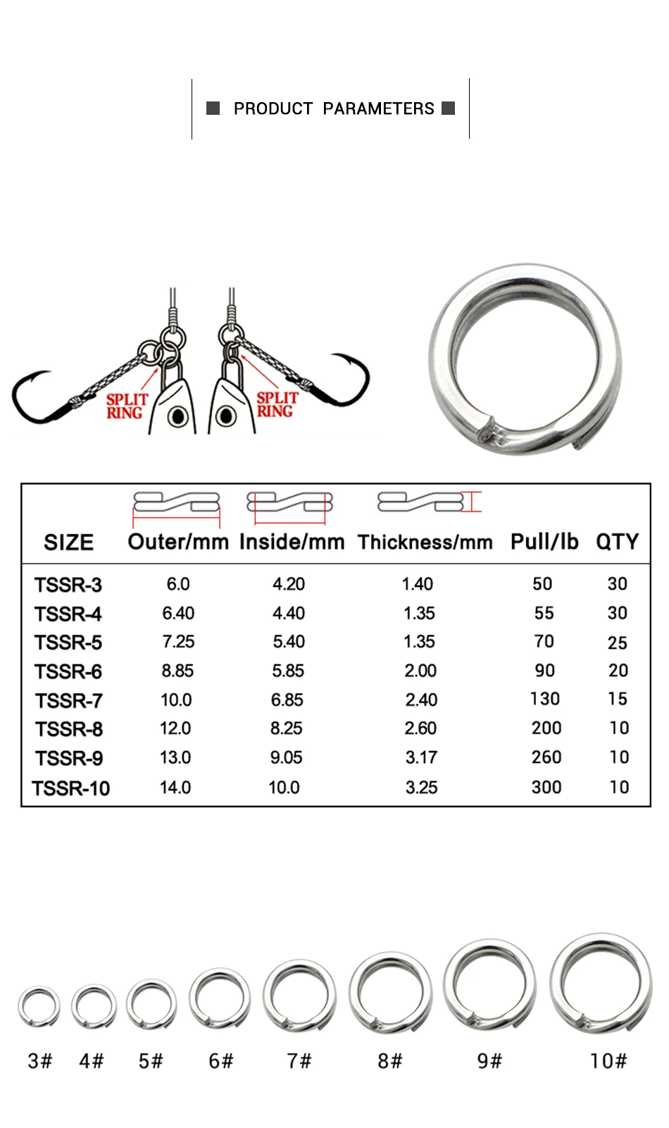 JK #3-#10 Fishing Split Ring Heavy Connector Assist Hooks Jig Sea Fishing Accessories Tackle