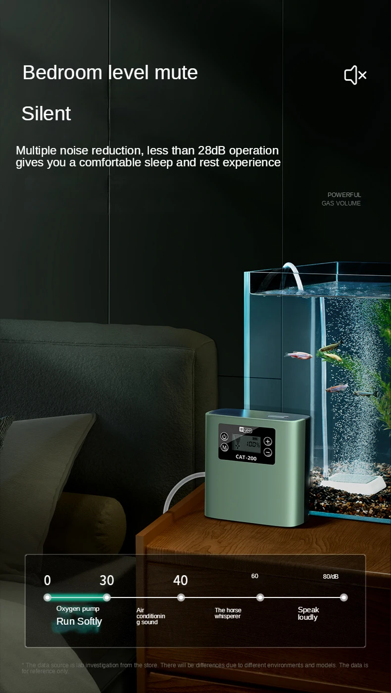 1. The fish tank is powered off for backup, concerned about the noise level (requires bedroom-level mute) and self-starting after power failure. The real self-starting after power failure (plug in the electric pump will not work, and the air pump will automatically start to add oxygen after a power failure) is not a power-off switch (plug in the electric pump to work, the air pump will continue to work after a power failure, and switch from external power supply to internal power supply).